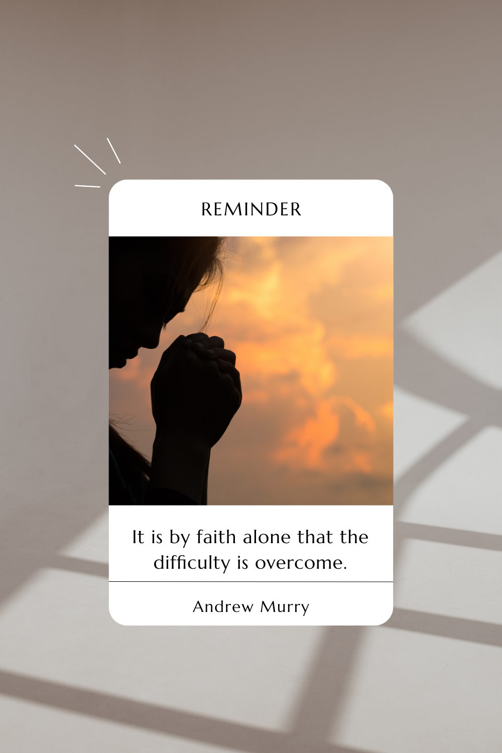 It is by faith alone that the difficulty is overcome. When once faith has taken its stand upon God’s word, and the Name of Jesus, and has yielded itself to the leading of the Spirit to seek God’s will and honour alone in its prayer, it need not be discouraged by delay. It knows from Scripture that the power of believing prayer is simply irresistible; real faith can never be disappointed. It knows how, just as water, to exercise the irresistible power it can have, must be gathered up and accumulated, until the stream can come down in full force, there must often be a heaping up of prayer, until God sees that the measure is full, and the answer comes.