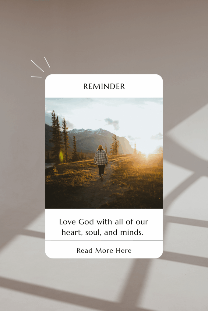 3. Love God with all of our heart, soul, and minds. The first commandment and the greatest commandment in all of the Bible is to love God. We might think that’s easy, but loving God means to put him first in our life. It means we seek him above everything else. (Deuteronomy 6:5)
