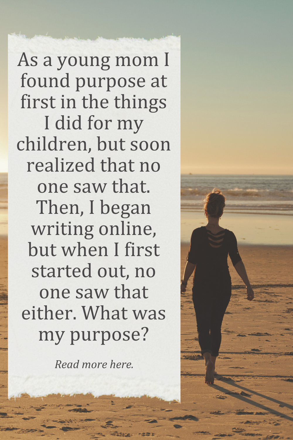 As a young mom I found purpose at first in the things I did for my children, but soon realized that no one saw that. Then, I began writing online, but when I first started out, no one saw that either. What was my purpose?